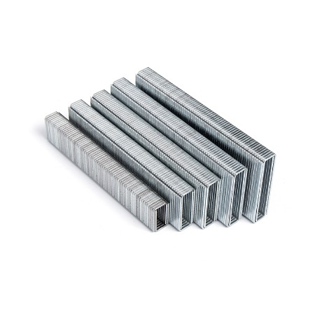 - Stáplaí Cruach Cruaite: Déantar iad seo a chóireáil le teas chun a neart teanntachta a mhéadú, rud a laghdóidh an seans go mbeidh an stáplacha ag lúbadh tionchair le hábhair dhlútha ar nós crua-adhmaid nó MDF.